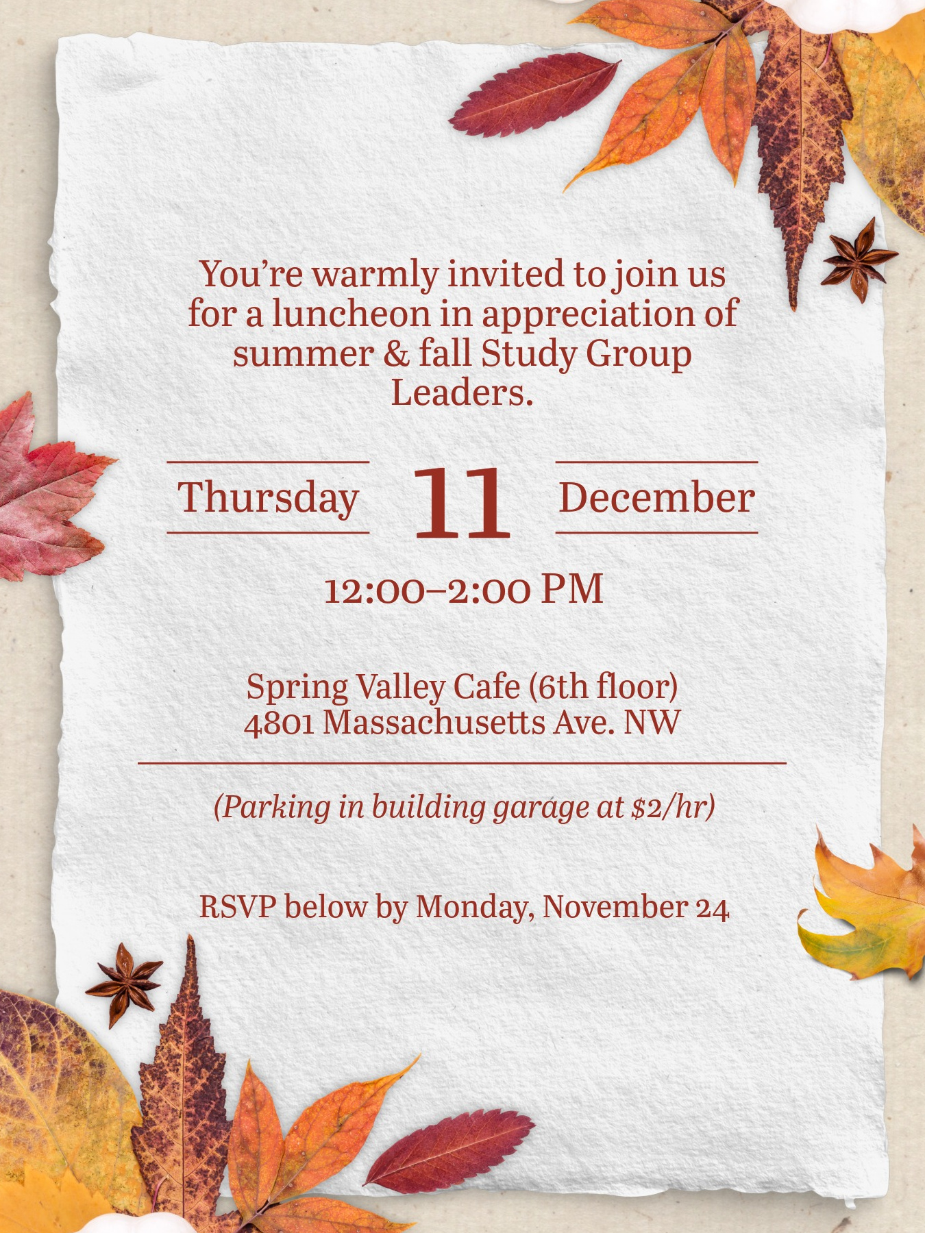 Study Group Leader Appreciation Luncheon