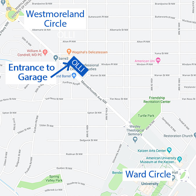 Use the AU garage at 4801 Massachusetts Ave. NW